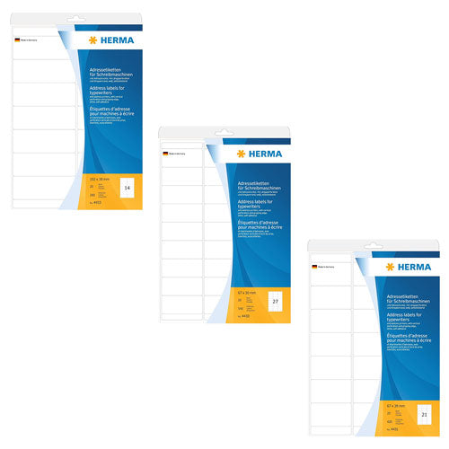 - Upewnij się, że etykiety napisane na maszynie pozostają na miejscu dzięki tej paczce stałych etykiet klejących.