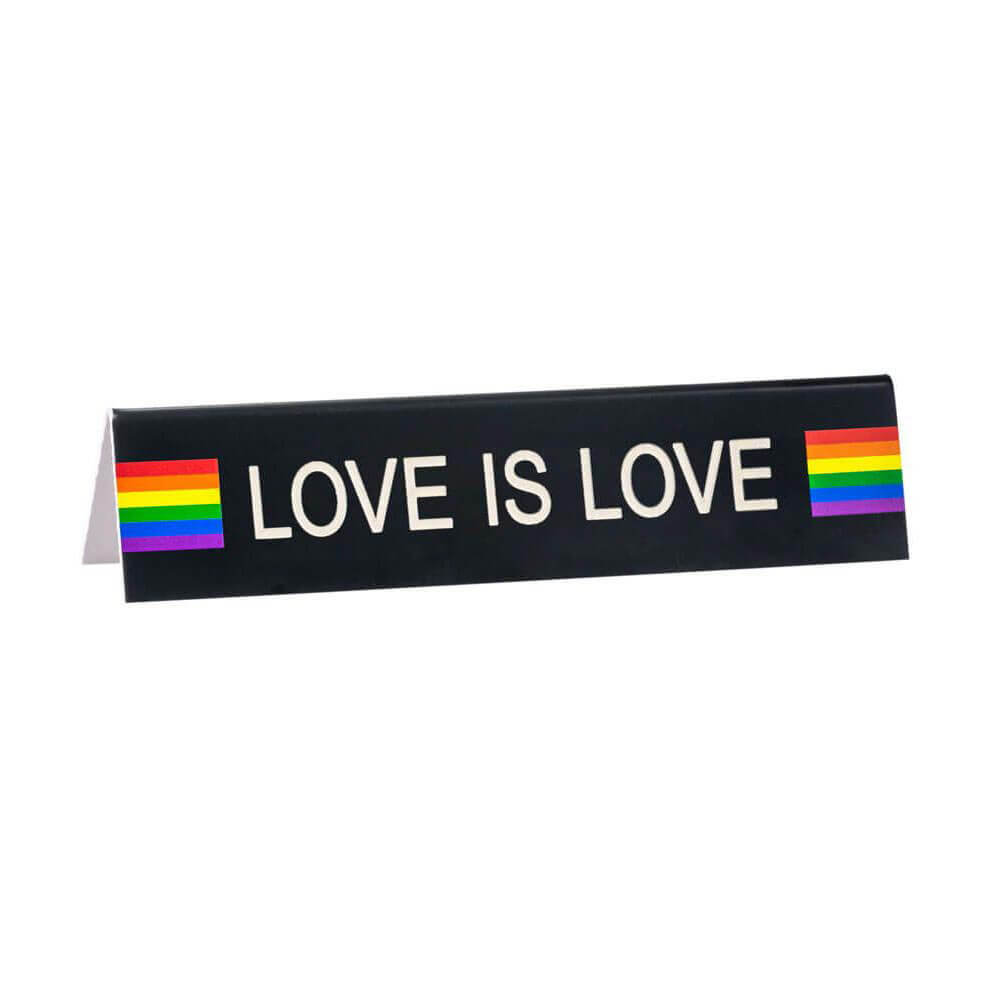 Rozbij monotonię pracy i przynieś do biura trochę LOL z tym znakiem czarnego i tęczowego Duma z Say Co?. Podpis brzmi: „Miłość jest miłością”. Produkt mierzy 14,5 x 3 cm.