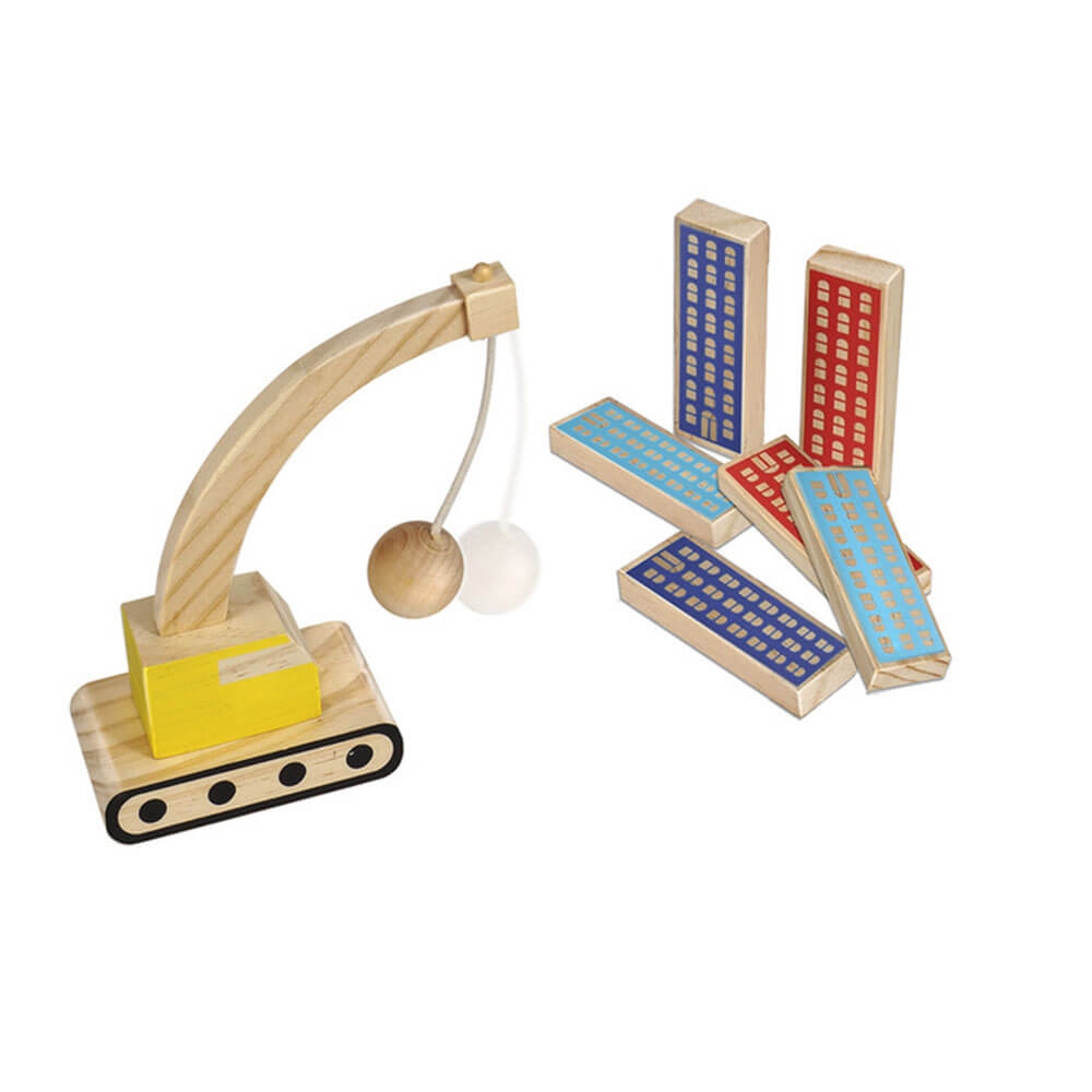 • Zestaw ten obejmuje 6 drewnianych budynków i 1 kulkę niszczącą.