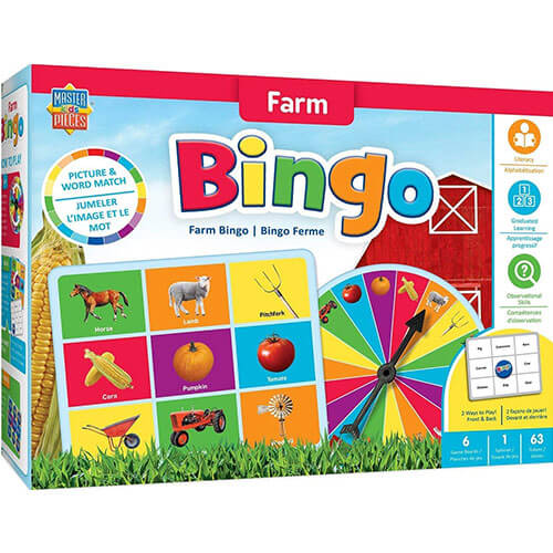 • 6 placas de jogo duplo face, 63 fichas de bingo e 1 girador de jogos