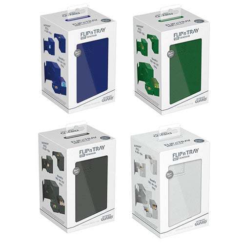 A caixa de deck de guarda final por excelência: um design monocolorido atemporal com forte fechamento magnético, bandejas de cartão e dados para armazenamento seguro do seu deck e uma superfície de xenoskin resistente, mas lisa. Procurando segurança adicional? Com espaço para 100 cartões de manga dupla ou 120 mangas únicas em tamanho padrão, o Flip'n'Tray 100+ tem tudo.