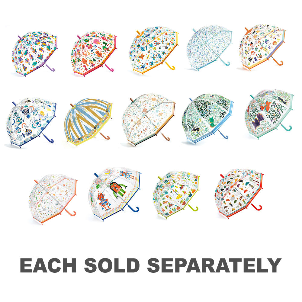 Designs de robô incríveis em um guarda -chuva transparente.