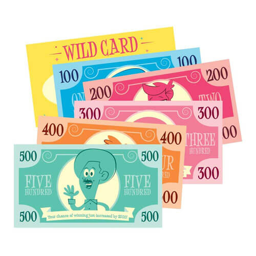 - COMO VOCÊ JOGA? - Em cada turno, o jogador 1 lê em voz alta uma das 180 diversão, criativo, pessoal e "perguntas carregadas". Todo mundo escreve uma resposta pessoal para a pergunta em sua folha de respostas. Qualquer resposta fará! O jogador à direita do jogador 1 coleta, embaralha e lê em voz alta as respostas. O jogador um escolhe sua resposta favorita e tem que adivinhar qual jogador disse qual resposta. O jogador 1 coleta um cartão de dinheiro para cada partida correta. O jogador que escreveu a resposta favorita também escolhe um cartão de dinheiro. Cada cartão de dinheiro tem um valor em dólar de US $ 100 a US $ 500, e os curingas são misturados em