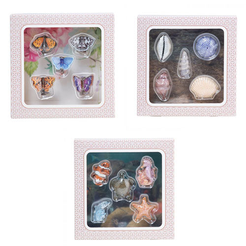 - Säljs i en uppsättning av 5 fjärilsdesigner (liten koppar, marmorerad vit, vanlig blå, komma och lila kejsare)