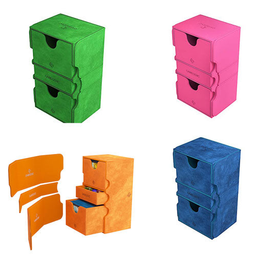 • Håller upp till 200 dubbelärmade kort: Två avtagbara kortinnehavare håller upp till 200 dubbelärmade kort i denna stora och extremt robusta däcklåda. Tillverkad för att passa särskilt tjocka inre ärmar som de nya "tätbara inre ärmarna" från Dragon Shield eller de "perfekta hårda" inre ärmarna från KMC.